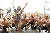 マッチョマンたちを従え、シークレットライブを行った倖田來未=神奈川県鎌倉市の由比ケ浜